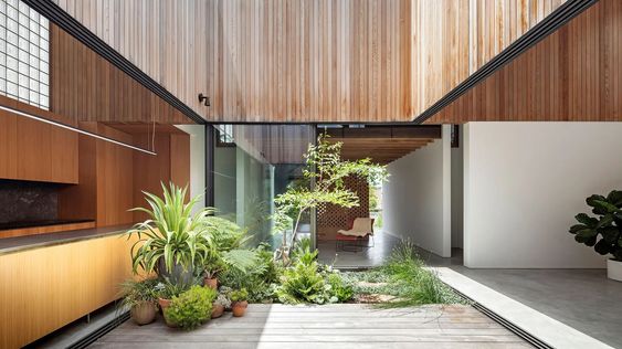 Bring the outdoors inside by emphasizing connections with nature through large windows, skylights, indoor-outdoor living spaces, and the inclusion of plants for a well-lit and natural environment.